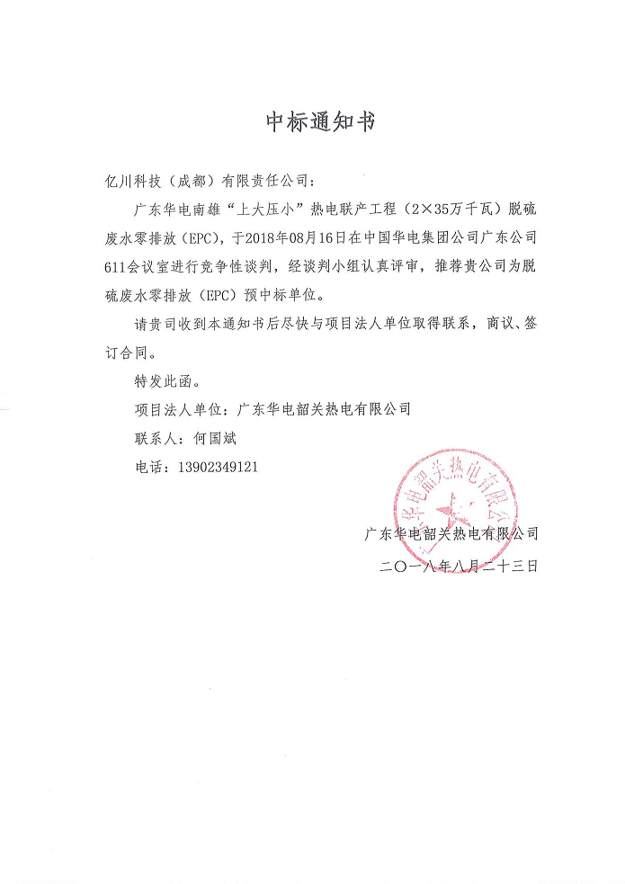 秋風(♦₹λfēng)起兮白(bái)雲飛(fēi),草(₩cǎo)木(mù)黃(huáng)落兮雁南(nán)歸,201≤¶8年(nián)8月(yuè)23日(rì),我公司中标廣東(d'€ōng)華電(diàn)南(nán)雄“上(shàng)大(dà)壓小(xiǎπ↓↕o)”熱(rè)電(diàn)聯産工(gōng)程(2×350MW)煙(yāβ±←×n)氣脫硫廢水(shuǐ)零排放(fàng)∞ ☆EPC項目,公司業(yè)績由北(běi)向南(nán)貫穿全國(guó)。±δ€↕